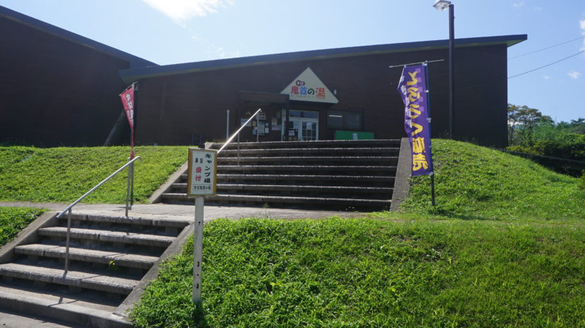 設営と散策でひと汗かいて、温泉でさっぱり汗を流す。