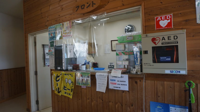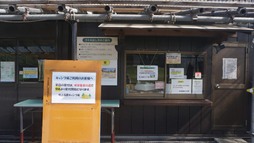 土日はゲート前のキャンプ場受付棟(上記画像)で受付をします。