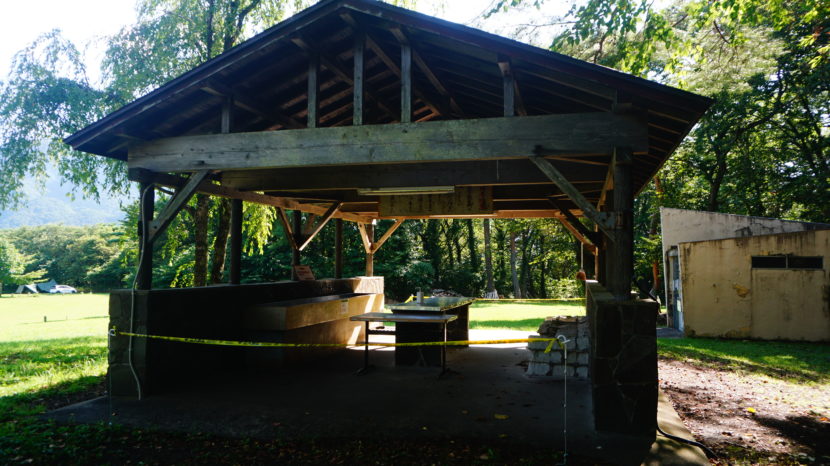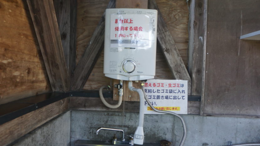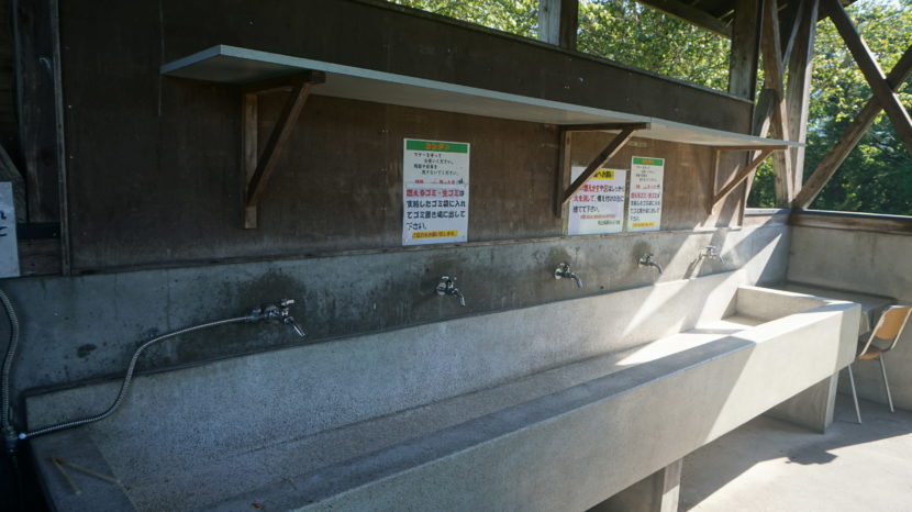 乗り入れOK、炊事場でお湯が使える。ゴミが無料廃棄できるのはバイクキャンプに嬉しい。