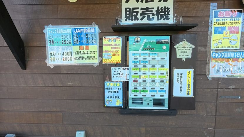 温泉施設の外に券売機があり、入浴券を購入し入場。