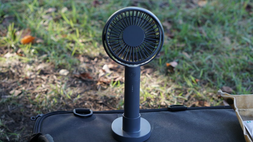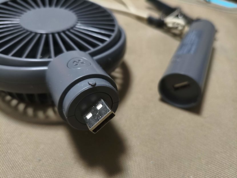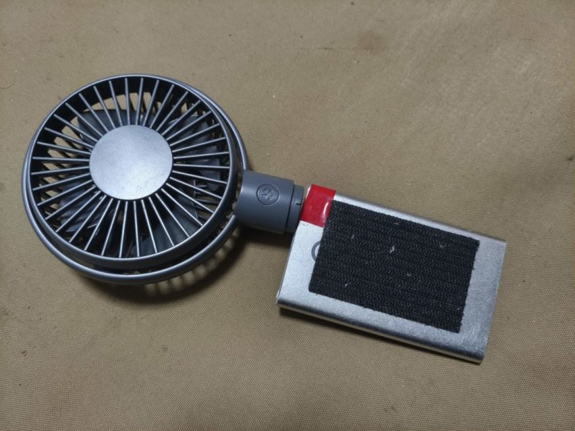 なのでこの扇風機自体もコンパクトなのだが、他にモバイルバッテリーをもっていれば