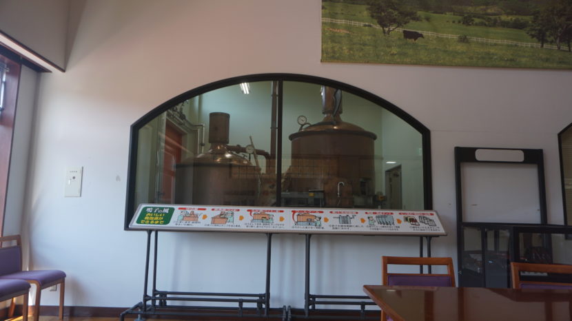 中に入ると左手に大きなガラス張りとなっており、その向こうに醸造タンクが見えた。