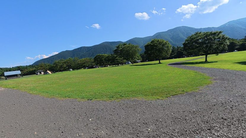 吹上高原キャンプ場の最大の魅力は、山々に囲まれた広大な敷地に広がる「全面芝生のロケーション」です。