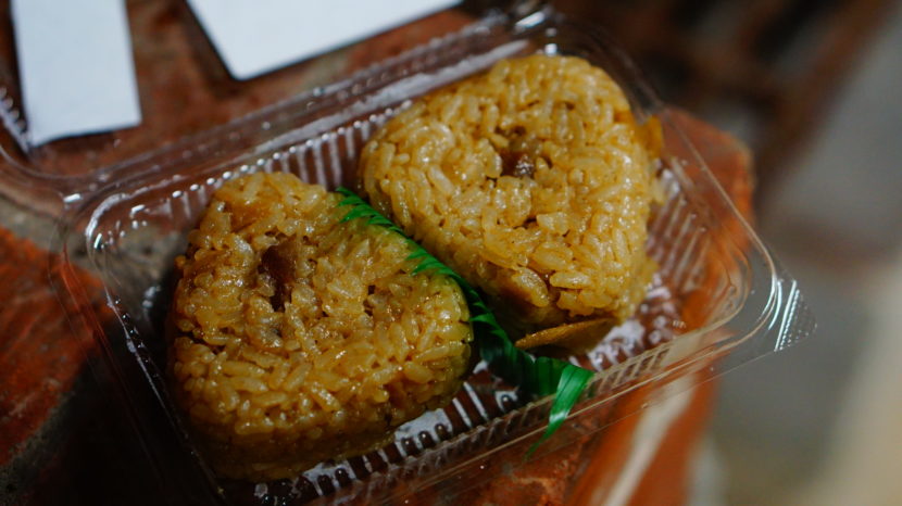 今夜のメニューは、近くのAコープで仕入れた「九州かしわむすび」と「味付け豚ハラミ焼肉」。
