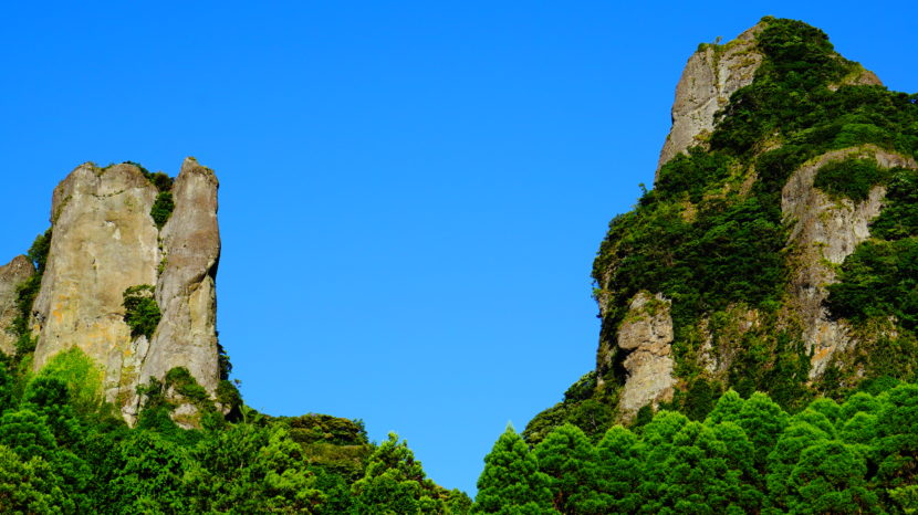 目の前にそびえ立つ「黒髪山・夫婦岩」の圧倒的な存在感